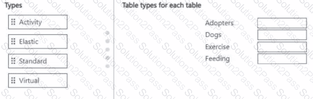 Which table type should you define for each requirement? To answer, move the appropriate table types to the correct tables. You may use each table type once, more than once, or not at all. You may need to move the split bar between panes or scroll to view content.