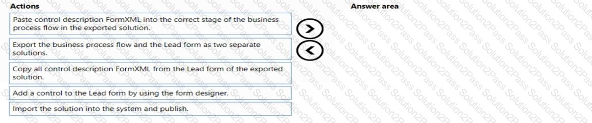 You must create a business process flow to ensure any lead with a budget over $10,000 requires approval by a manager. You must add a custom control that allows users to select the estimated budget cost for a project.