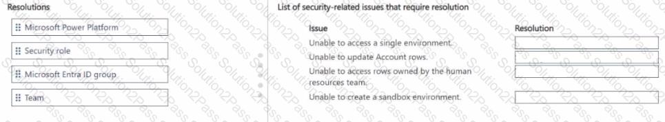 You are testing the deployment of a model-driven app. Microsoft Entra ID groups are used exclusively to manage environment- and team-level permissions.