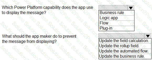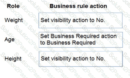 Which business rule actions should you use? To answer, drag the appropriate business rule actions to the correct fields. Each business rule action may be used once, more than once, or not at all. You may need to drag the split bar between panes or scroll to view content.