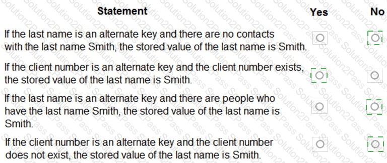 A company updates their client contact information periodically. The contact entity has alternate keys defined.