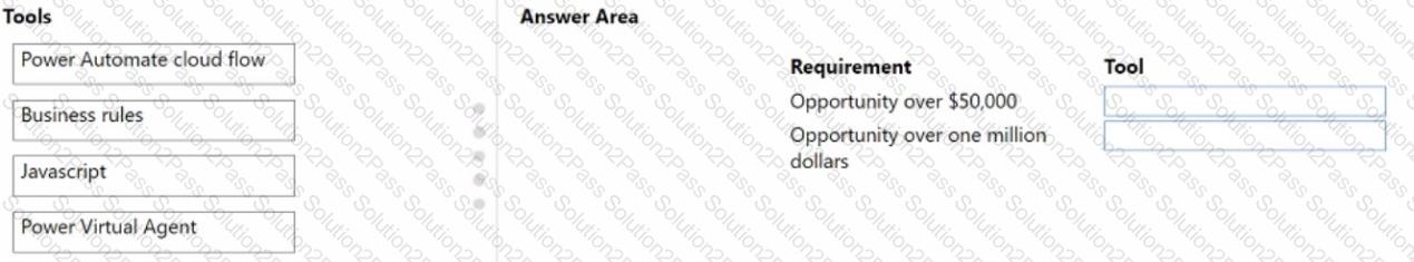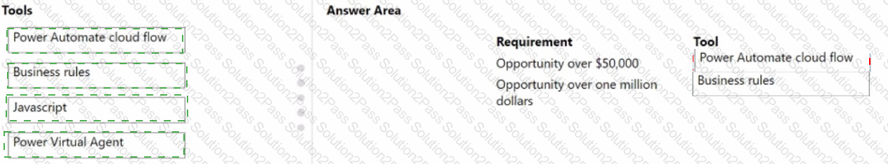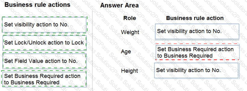 Which business rule actions should you use? To answer, drag the appropriate business rule actions to the correct fields. Each business rule action may be used once, more than once, or not at all. You may need to drag the split bar between panes or scroll to view content.