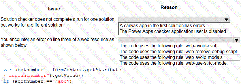 What is the root cause for each issue? To answer, select the appropriate options in the answer area.