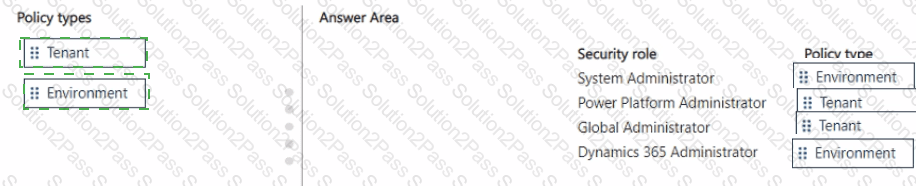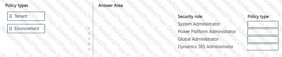 Which policy type should you recommend for each security role? To answer, move the appropriate policy types to the correct security roles. You may use each policy type once, more than once, or not at all. You may need to move the split bar between panes or scroll to view content.