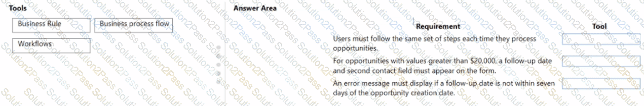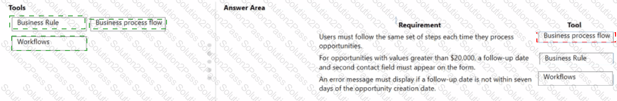 What should you recommend? To answer, drag the appropriate tools to the correct requirement. Each tool may be used once, more than once, or not at all. You may need to drag the split bar between panes or scroll to view content.