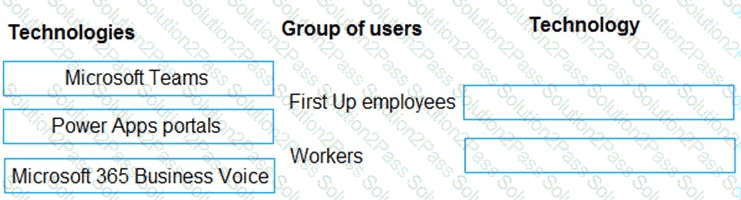 What should you recommend? To answer, drag the appropriate technologies to the correct groups of users. Each technology may be used once, more than once, or not at all. You may need to drag the split bar between panes or scroll to view content.