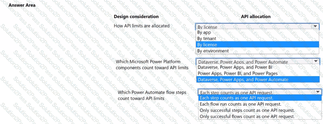 The company needs to understand how API requests are used so that its solution can be designed within the API limits granted by Microsoft. The company requires the following information: