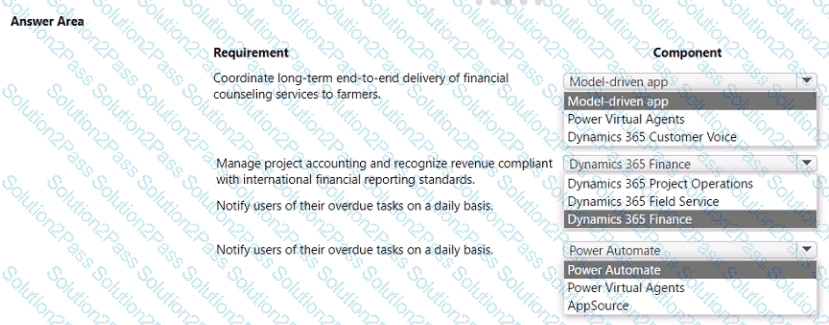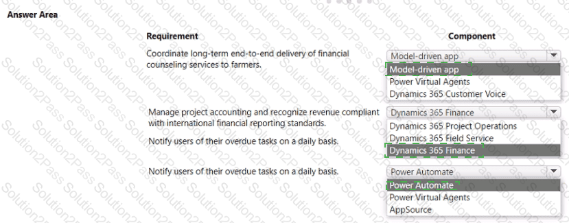 You need to select Microsoft Power Platform components to satisfy the requirements.