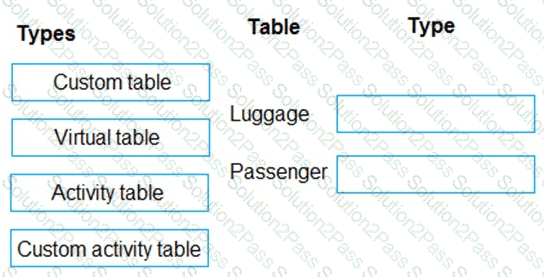 What should you recommend? To answer, drag the appropriate types to the correct tables. Each type may be used once, more than once, or not at all. You may need to drag the split bar between panes or scroll to view content.