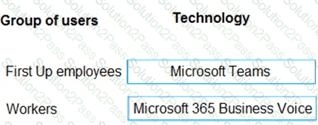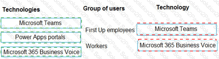What should you recommend? To answer, drag the appropriate technologies to the correct groups of users. Each technology may be used once, more than once, or not at all. You may need to drag the split bar between panes or scroll to view content.