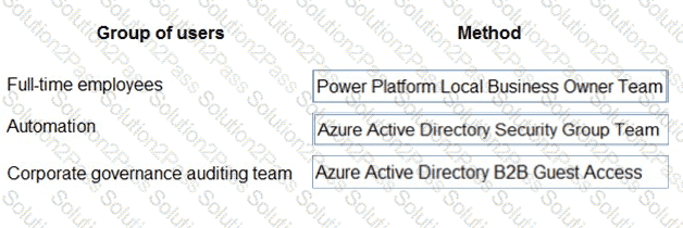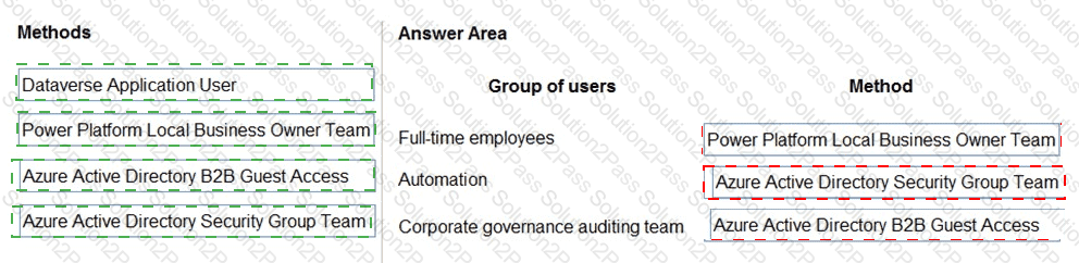 What should you recommend? To answer, drag the appropriate methods to the correct groups of users. Each method may be used once, more than once, or not at all. You may need to drag the split bar between panes or scroll to view content.