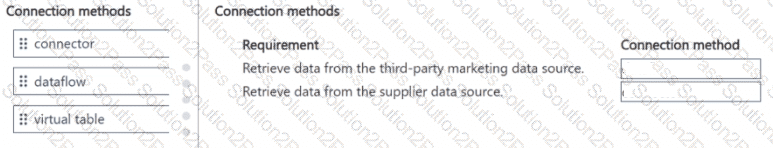 To answer, move the appropriate connection methods to the correct requirements. You may use each connection method once, more than once, or not at all. You may need to move the split bar between panes or scroll to view content.
