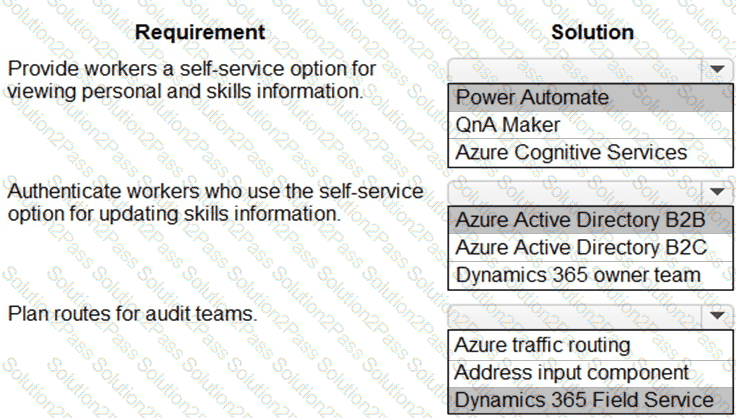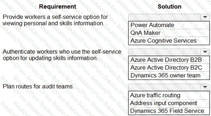 What should you recommend? To answer, drag the appropriate solutions to the correct requirements. Each solution may be used once, more than once, or not at all. You may need to drag the split bar between panes or scroll to view content.