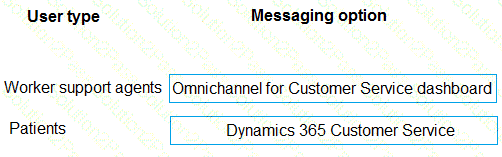 What should you recommend? To answer, drag the appropriate messaging options to the correct user types. Each messaging option may be used once, more than once, or not at all. You may need to drag the split bar between panes or scroll to view content.