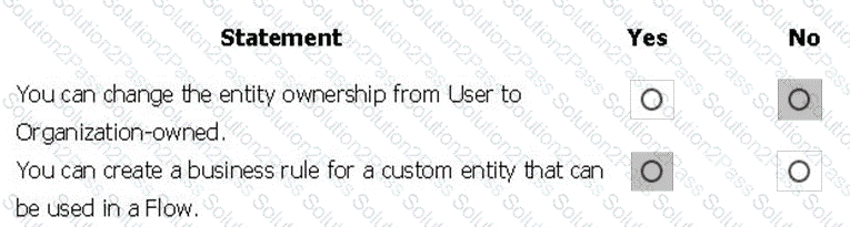 For each of the following statements, select Yes if the statement is true. Otherwise, select No.