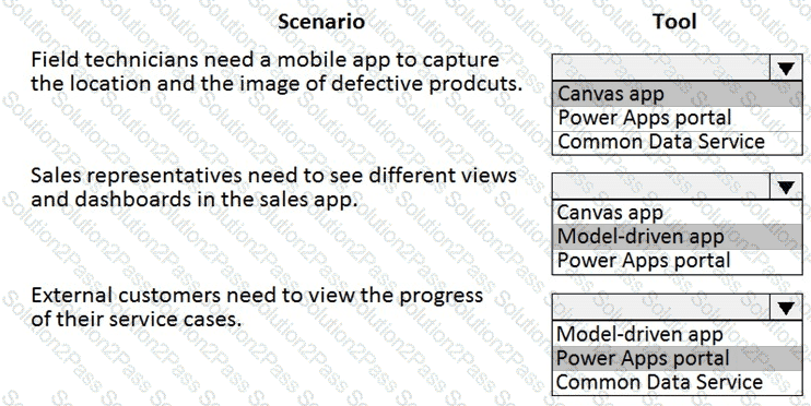 You need to recommend the appropriate types of Power Apps to use.