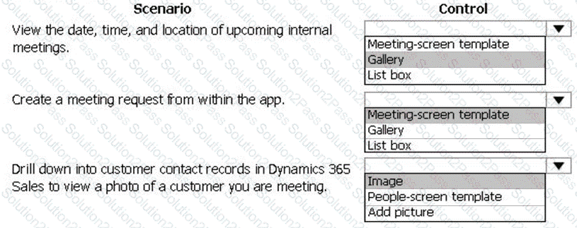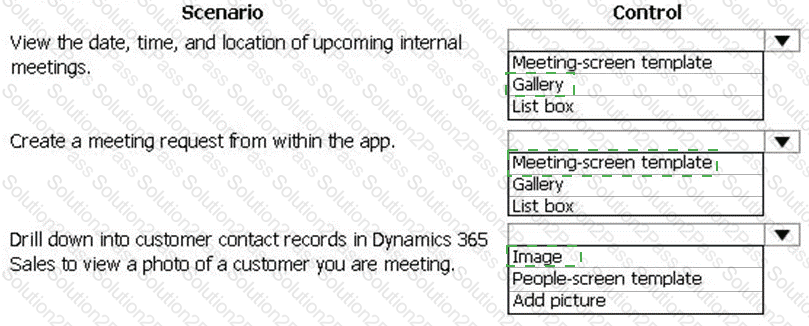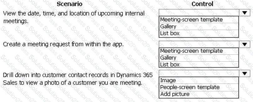 Which types of controls would you recommend using in Power Apps? To answer, select the appropriate control in the dialog box in the answer area.