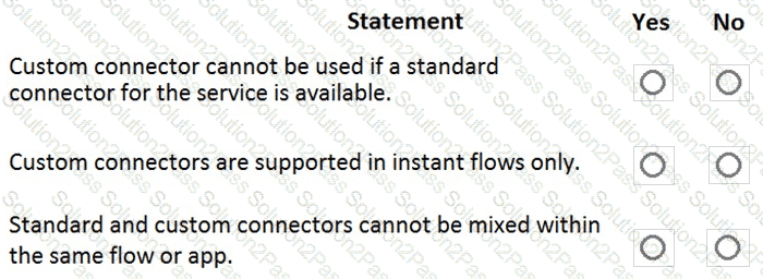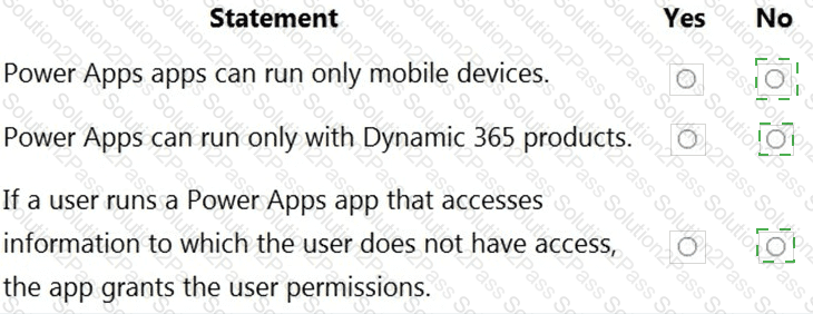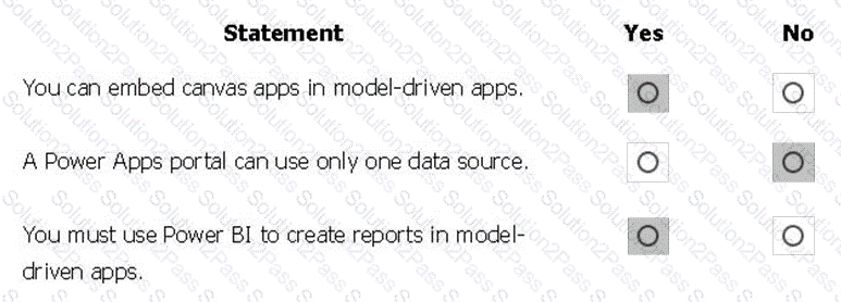 For each of the following statements, select Yes if the statement is true. Otherwise, select No.
