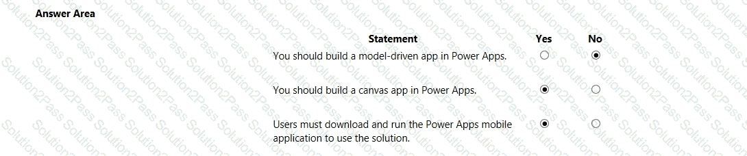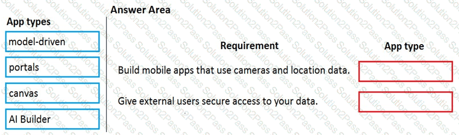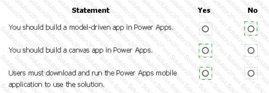 You need to recommend the appropriate types of Power Apps to meet the company’s requirements.