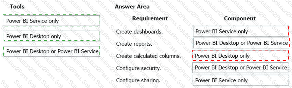 Which components should you use? To answer, drag the appropriate components to the correct requirements. Each component may be used once, more than once, or not at all. You may need to drag the split bar between panes or scroll to view content.