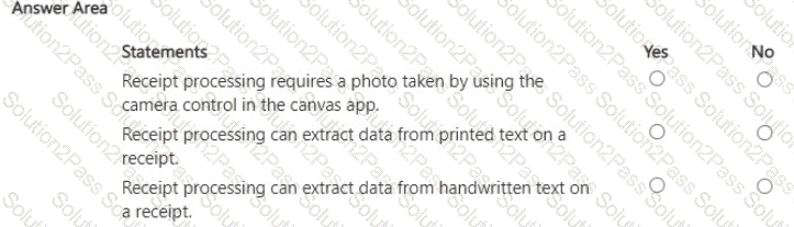 A company uses the receipt processing model of Al Builder in a canvas app to process expenses.