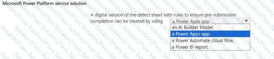 You need to recommend a Microsoft Power Platform service that fulfills the manufacturer requirements.