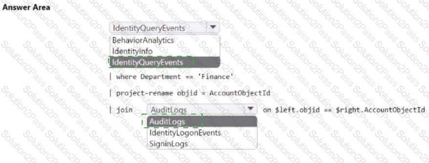 How should you complete the KQL query? To answer, select the appropriate options in the answer area.