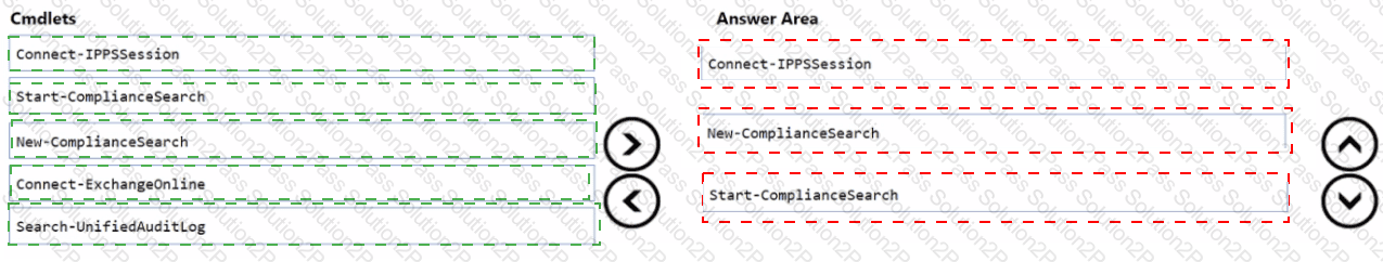Which three cmdlets should you run in sequence? To answer, move the appropriate cmdlets from the list of cmdlets to the answer area and arrange them in the correct order.