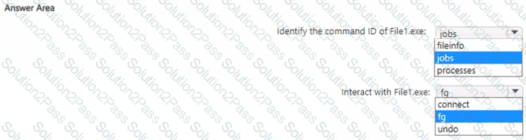 You have a Microsoft 365 subscription that uses Microsoft Defender for Endpoint Plan 2 and contains a Windows device named Device 1. You initiate a live response session on Device1 and launch an executable file named File1.exe in the background. You need to perform the following actions: