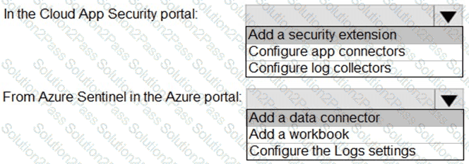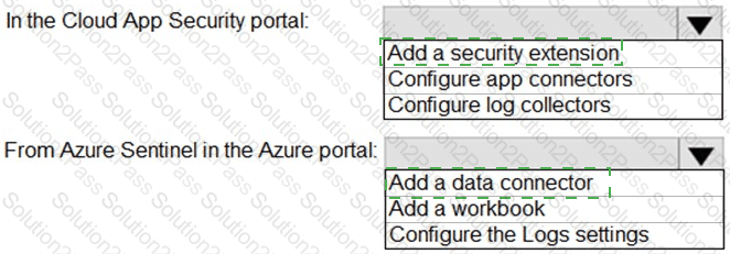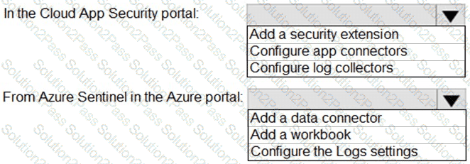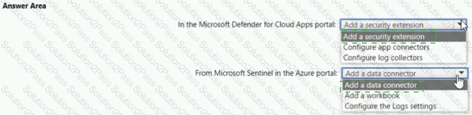 You need to configure the Microsoft Sentinel integration to meet the Microsoft Sentinel requirements. What should you do? To answer, select the appropriate options in the answer area. NOTE: Each correct selection is worth one point.