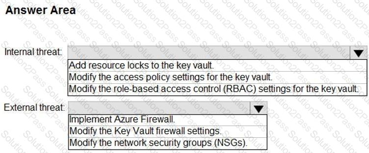 What should you recommend for each threat? To answer, select the appropriate options in the answer area.