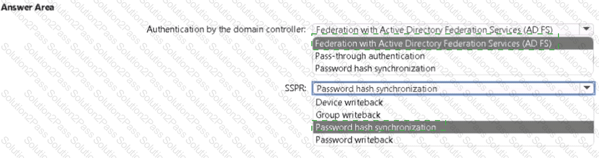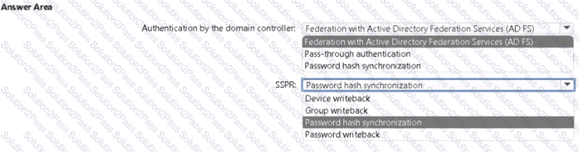 • User sign-ins to Azure AD must be authenticated by an Active Directory domain controller.