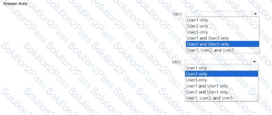 Which users can sign in to VM1, and which users can sign in to VM2? To answer, select the appropriate options in the answer area.