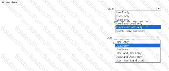 Which users can sign in to VM1. and which users can sign in to VM?? To answer, select the appropriate options in the answer area. NOTE: