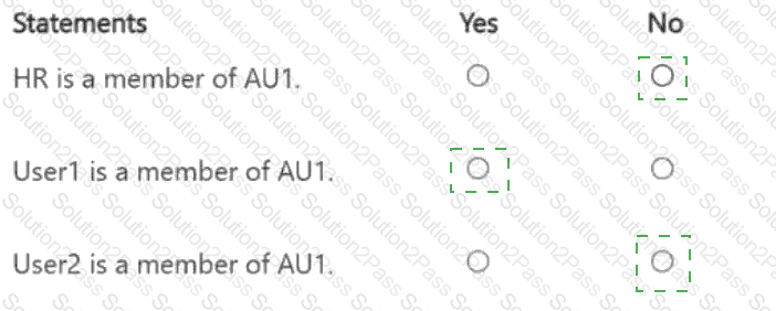 You have a Microsoft Entra tenant that contains an administrative unit named AU1. AU1 is configured for assigned membership.