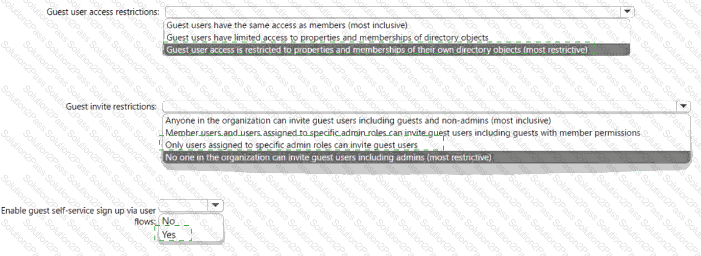 You need to configure External collaboration settings for the tenant to meet the following requirements: |