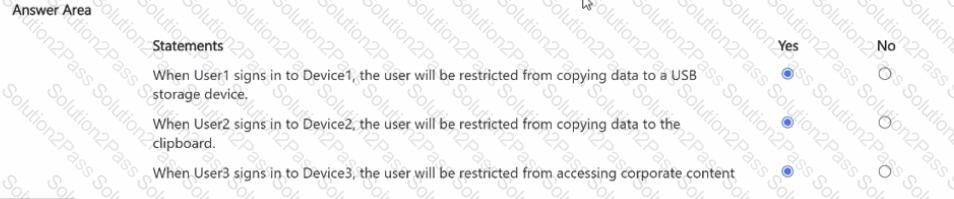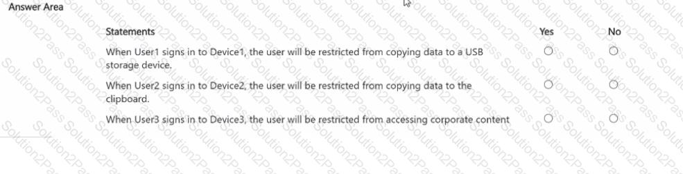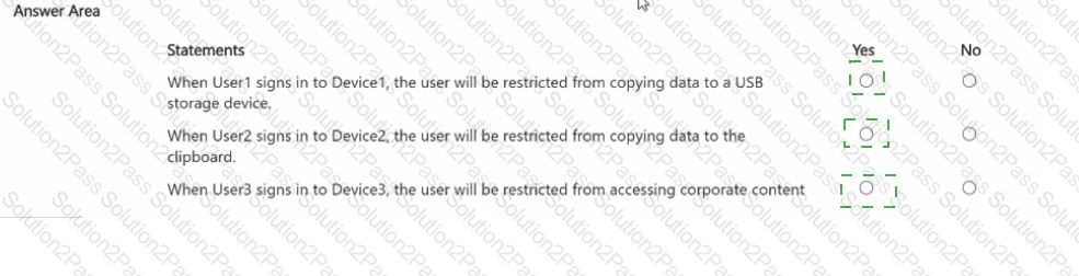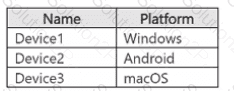 You have a Microsoft 36S ES subscription that contains a Windows 11 device named Device 1 and three users named User 1. User2. and User3.