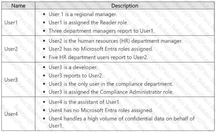 You have a Microsoft 365 E5 subscription that contains the users shown in the following table.