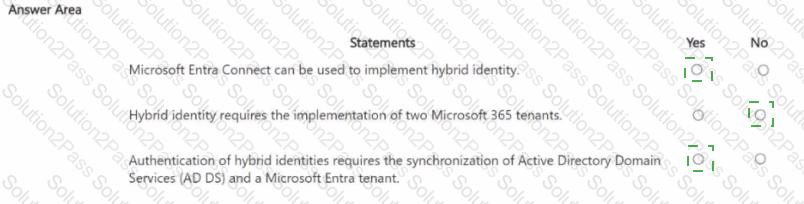For each of the following statements, select Yes if the statement is true. Otherwise, select No.