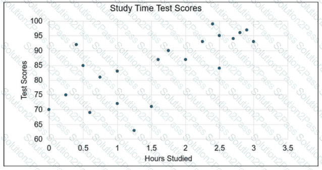Review the scatter plot of hours students studied for a test and their results.