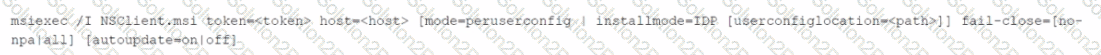 You are deploying the Netskope Client to Windows devices. The following command line would be used to install the client MSI file: