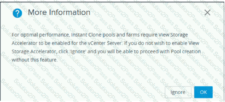 An administrator is deploying an Instant Clone desktop pool on an 8-node Nutanix cluster. The system displays a warning message, as shown in the exhibit.