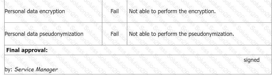 encryption and pseudonymization tests failed. Also, whether the Service Manager is authorized to