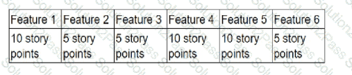 An agile team has sized all of the features for the release. Using the table above, how many sprints will it take to complete this release if the team is expecting to have a