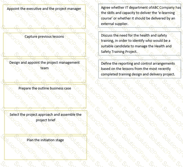 ABC Company has commissioned a project in response to recent changes in government legislation relating to health and safety on construction sites. The project will deliver “capability to provide health and safety training”, including the materials needed for classroom-based training and e-learning. The expected benefits for construction companies include a reduction in lost days and legal costs due to accidents.