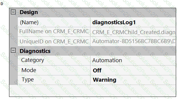 During project testing, an issue requires you to add a diagnostic log component to track the log files to help determine a resolution. After testing, you decide not to remove the diagnostic log component from the automation and decide to simply turn off the log component.
