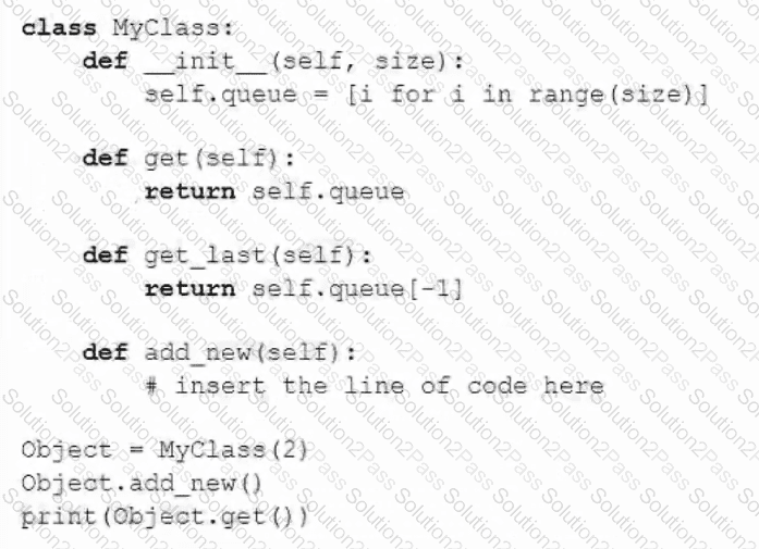 Which of the following lines of code will work flawlessly when put independently inside the add_new () method in order to make the snippet's output equal to [0, 1, 21 ? (Select two answers)