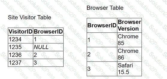 The data is stored in the format shown below in the related table, with a NULL BrowserID stored in the Site Visitor Table if an unknown browser version