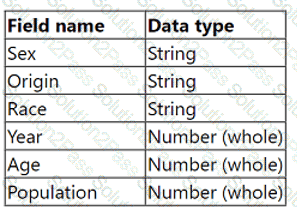 You need to shape the data in US Population Estimates by using Tableau Desktop. The data must be formatted as shown in the following table.