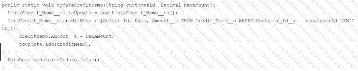 A custom object called Credit_Memo__c exists in a Salesforce environment. As part of a new feature development that retrieves and